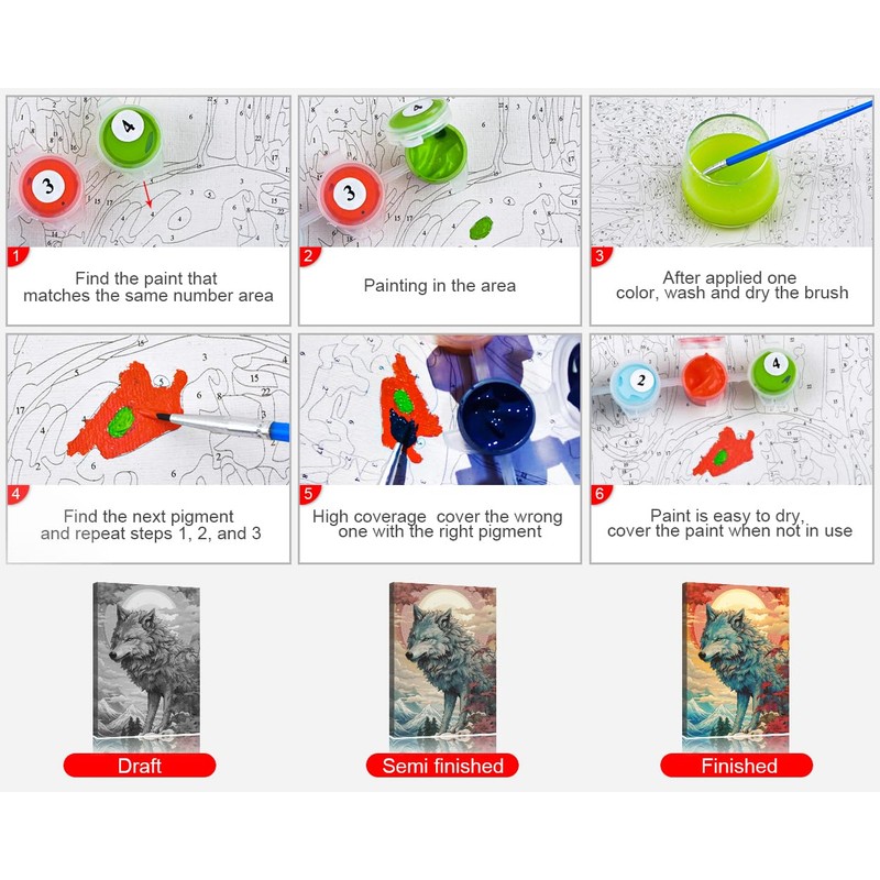 - Easy to paint: Our paint by number kit is easy to use. They only match the numbers of the paint and the numbers on the canvas to fill in the paint. And follow the instructions, paint by colour numbers and finish one by one. Especially good for people who like to paint but are not very good at doing it hands-free.