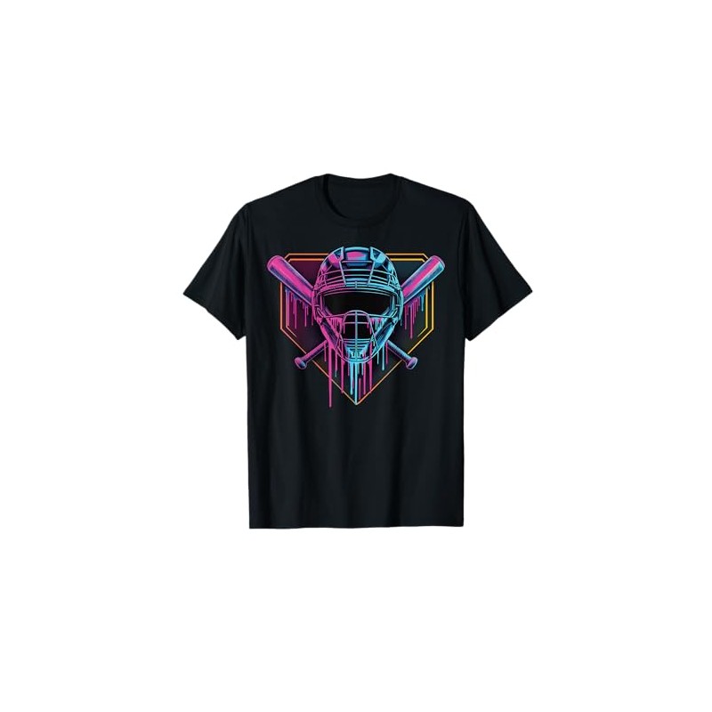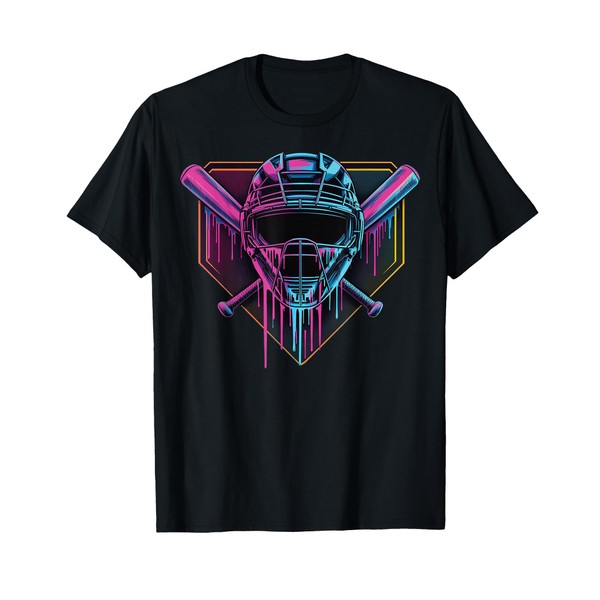 - Trendy dripping painting baseball theme design. Perfect for players, fans, or anyone who loves unique baseball artwork with a vaporwave twist. Features home plate background with a baseball catcher mask. Perfect for a young boy who is the teams catcher!