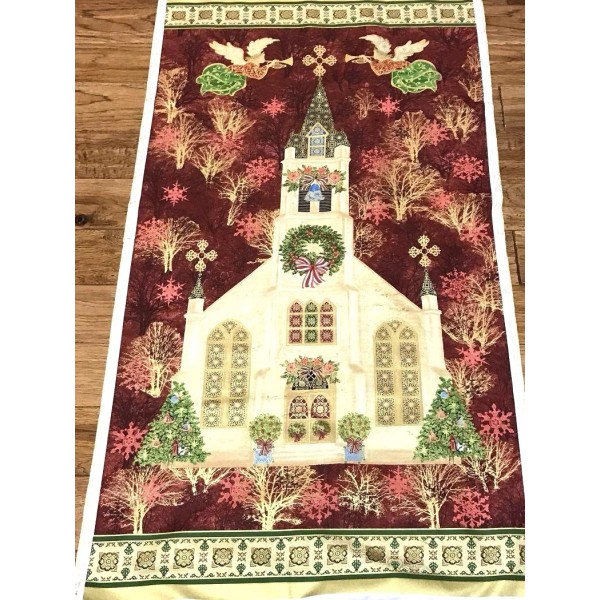 Paintbrush Studios Christmas Midnight Mass CATHEDRAL ANGELS w gold metallic quilters Fabric Panel
