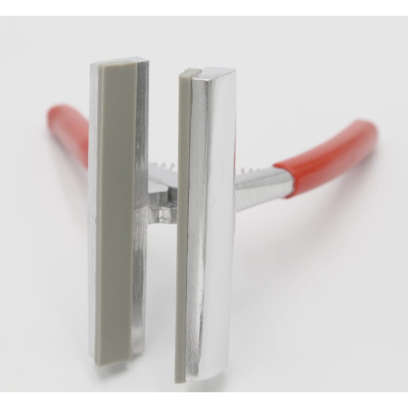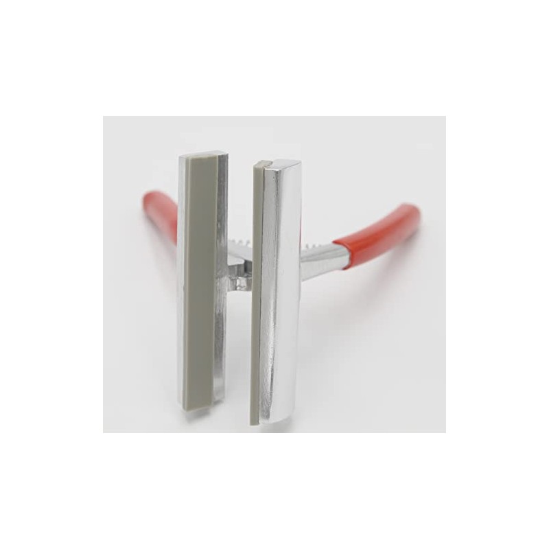- Practical: thanks to the red grip pads, the device gains the necessary grip and continuous use of the pliers becomes easy. Thanks to the spring between the pliers, even longer and larger stretcher frame formats can be perfectly stretched, as the pliers are automatically opened again and again. And you don't have to help manually.