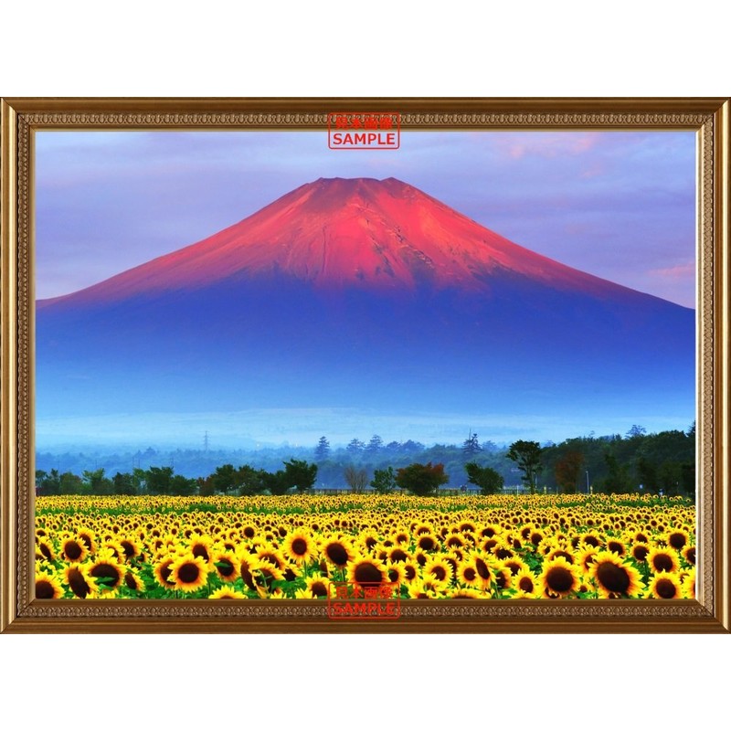 Painting Wallpaper Poster Removable Self Stick Red Fuji Afterglow of Fuji Mountain View and Frames [向日葵 Fields Sunflowers Printed Trick Art] Character Black FJS – 033sgb2 594 mm × For Architectural Wallpaper Weather Resistant Paint