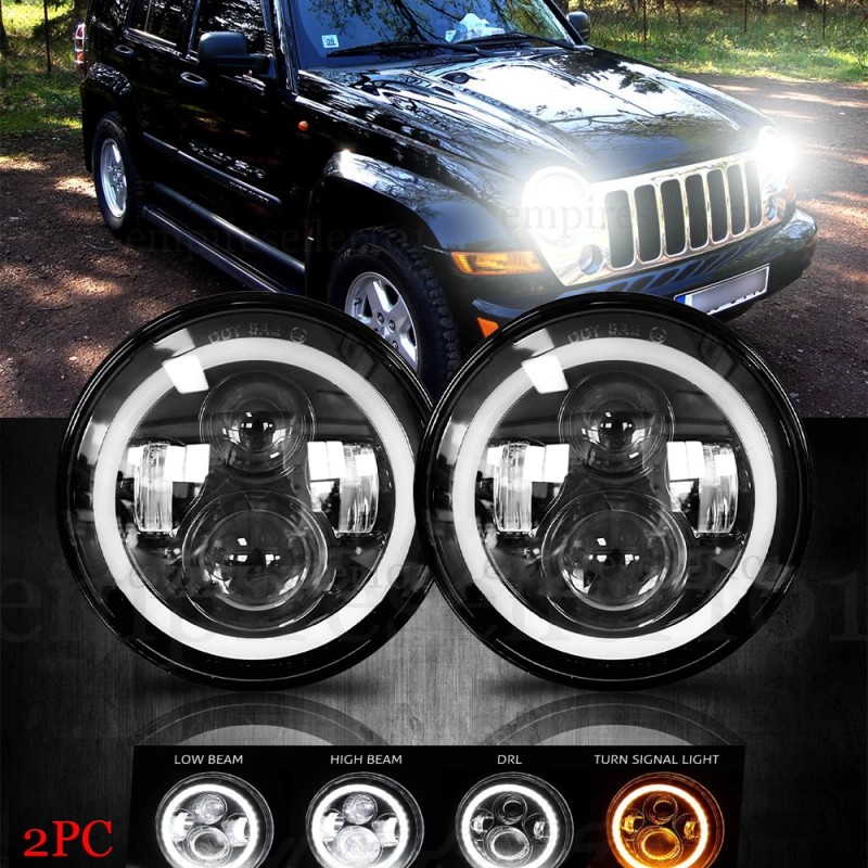 PAIR DOT 7" Inch LED Headlights DRL Turn Signal Combo For 2003-2007 Jeep Liberty