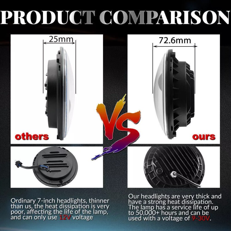 - Model: 7 Inch Round LED Headlight