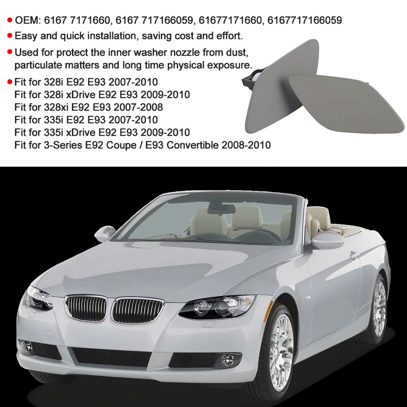Pair of Headlight Washer Covers, Pair of Headlight Washer Nozzle Cap Covers Suitable for 3 Series E92 E93 6167 7171660