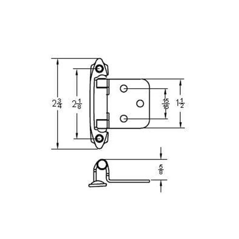 Heirloom Silver Pair Semi-concealed, Self-closing, Overlay hinge, Plated steel.