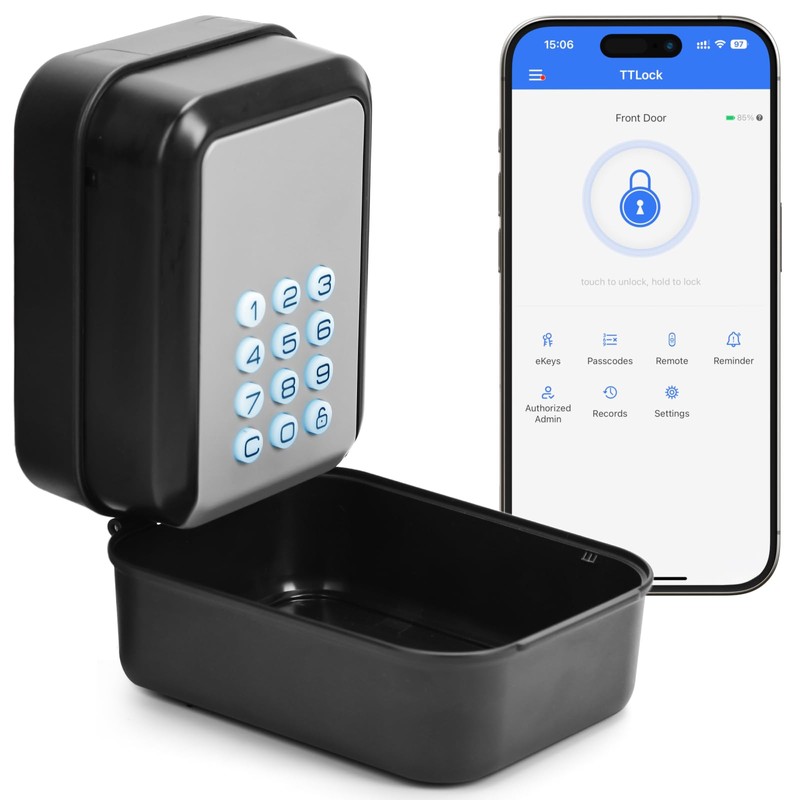 - Two ways to unlock: the smart key box is unlocked via the smartphone (Bluetooth range) or a secure PIN code. Use the TTLOCK app to provide temporary access remotely without the need for a physical key! Ideal for homes, rentals or offices.