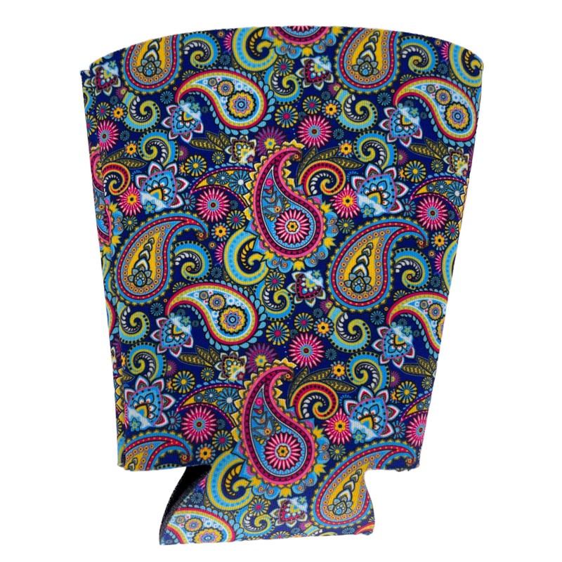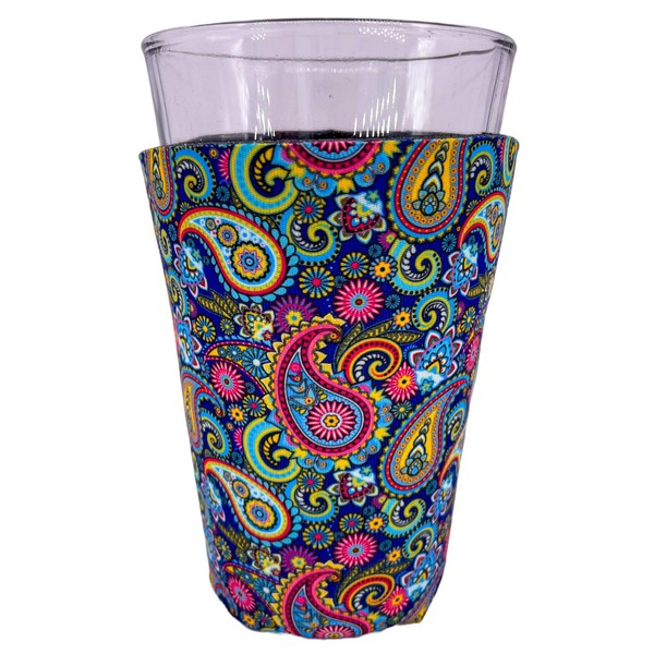 1/8" (3mm) USA made poly foam material. Built for most 16 oz. tapered pint glasses. Collapsible bottom, folds flat for storage. Keeps drinks colder longer and hands dry. Helps prevent surface damage by limiting condensation. Design is dyed into fabric for an all-over print.