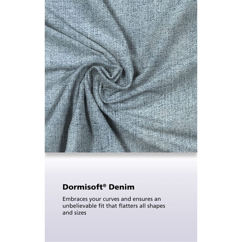 - Dormisoft Denim - Elastic waist jeans are made with Dormisoft Denim that embraces your best assets and flatters all shapes and sizes; Machine washable