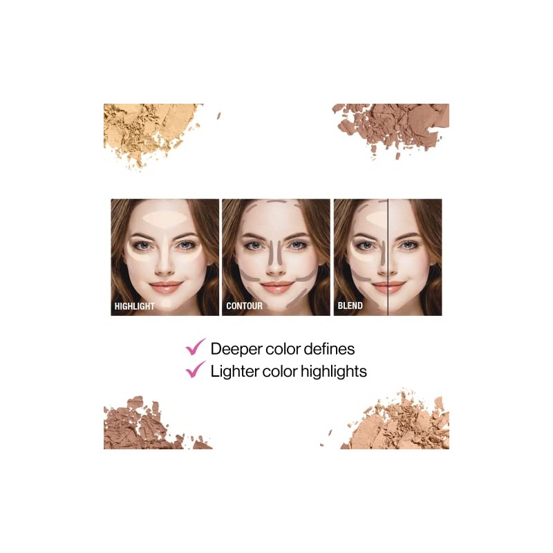 Paleta Contorno E Iluminador En Polvo, Bronzer, Contour, Alta Pigmentacin, Larga Duracin, No Comedognico, Apto Para Piel Grasa Y Acn, Vegano, Tono...