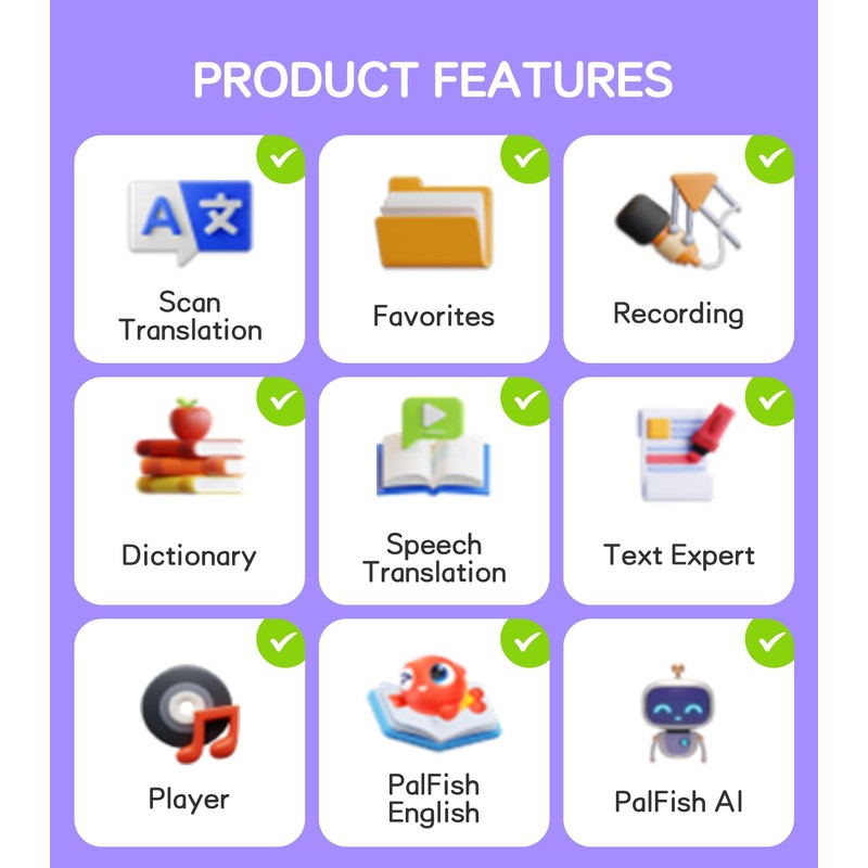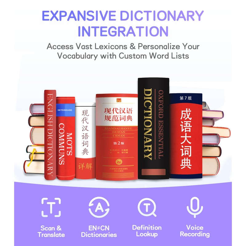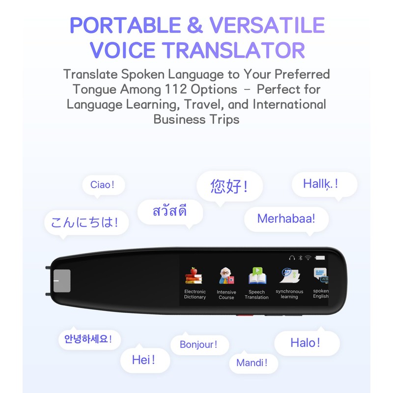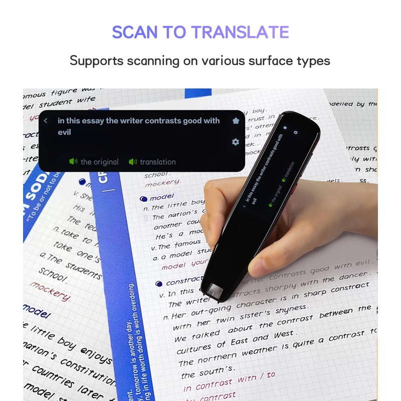 - SCAN TO TRANSLATE: The high-sensitivity scanning tip provides precise accuracy, generating translations instantly after scanning. Both the original and translated text support text-to-speech functionality for added convenience. With the "Dictionary" feature, you can not only translate scanned text but also quickly look up definitions and pronunciations with a single click.
