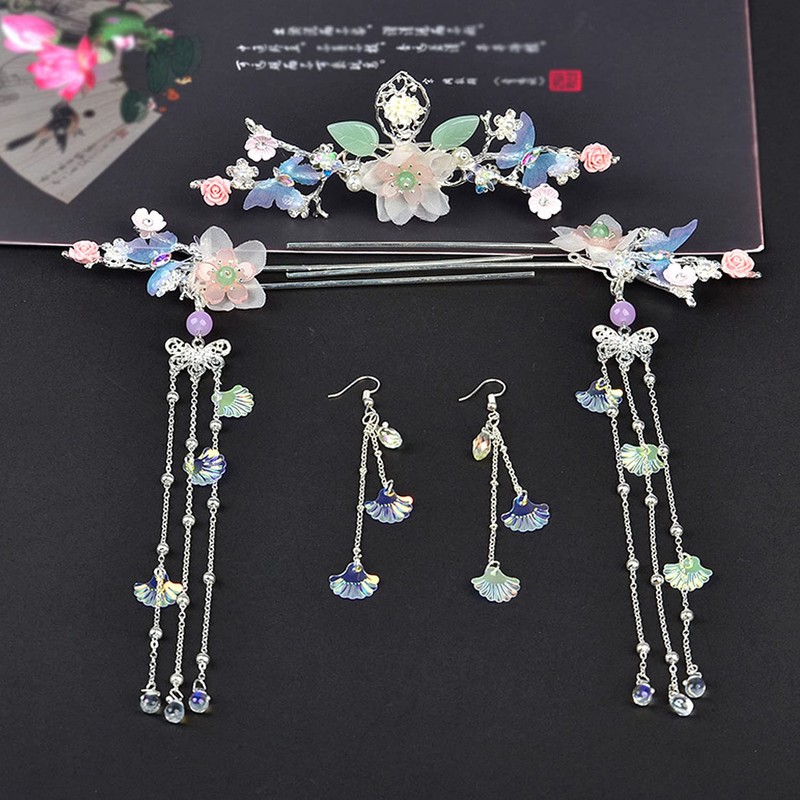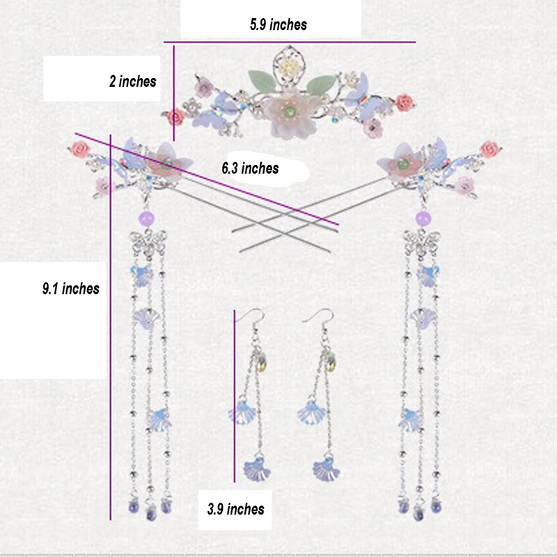 Palillos de aleación para el pelo largo de la borla Hanfu chino Peine/Pendientes Conjunto tradicional clásico (Estilo A)