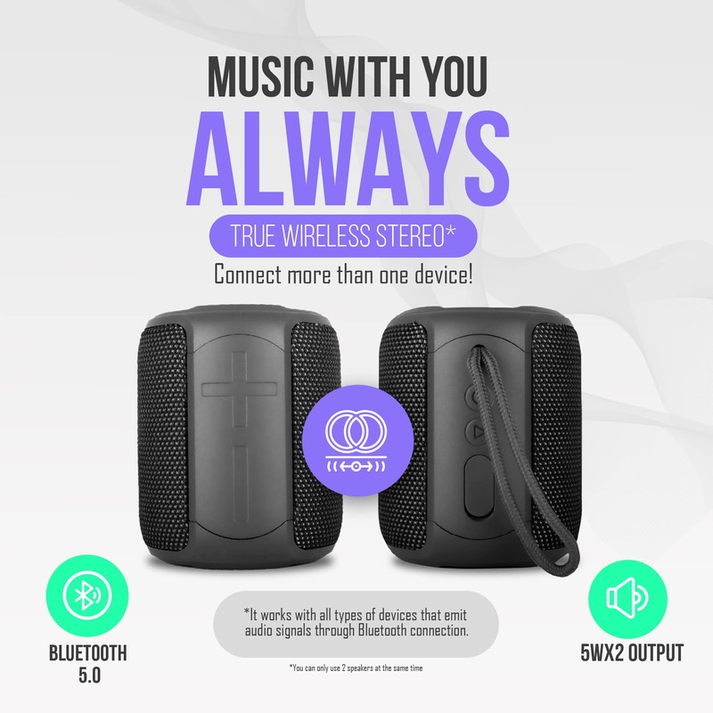 - 💳 Use Your Portable Bluetooth Speakers With a TF Card - You can use your outdoor speakers Bluetooth waterproof with a MicroSD card with music or audio content. Connect two devices simultaneously for greater efficiency and functionality.