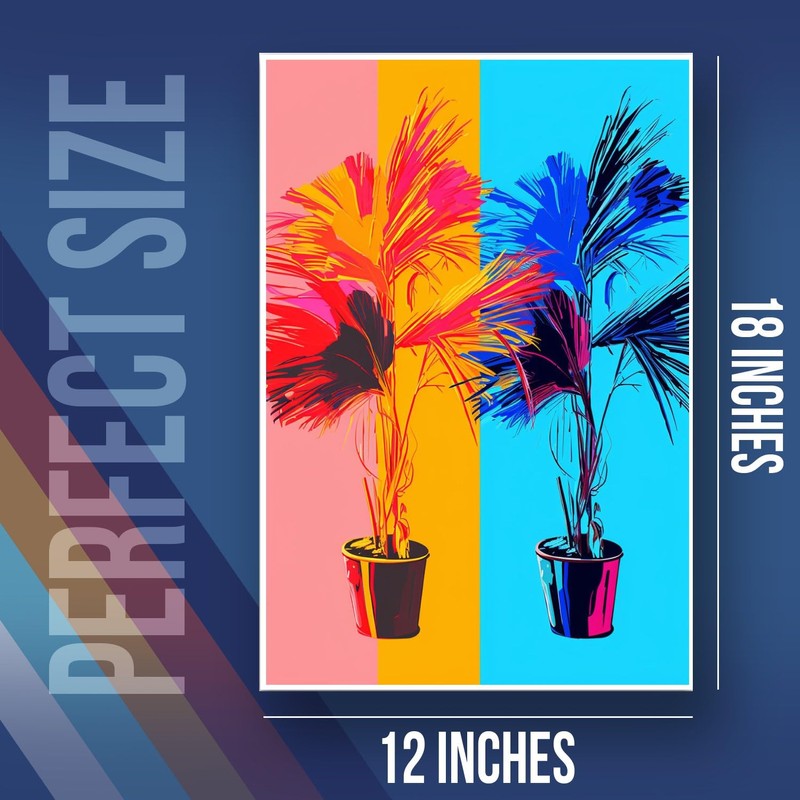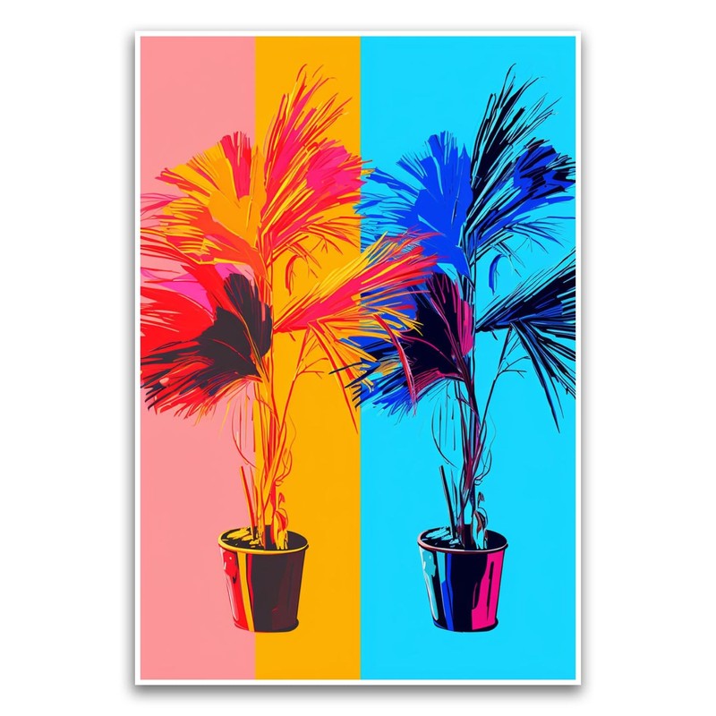 Palm Plant Pop Art Colorful Polyptych Poster - Vibrant Pop Art Warhol Inspired Digital Art Poster - 12 x 18 Inch Unframed Poster - Premium Poster On 100lb Gloss Paper - Printed In The USA FHJP1235