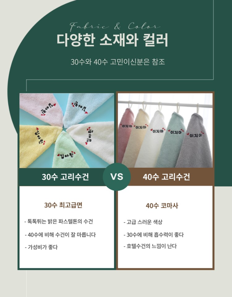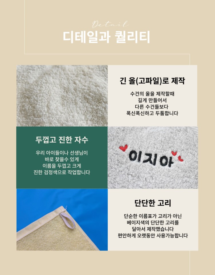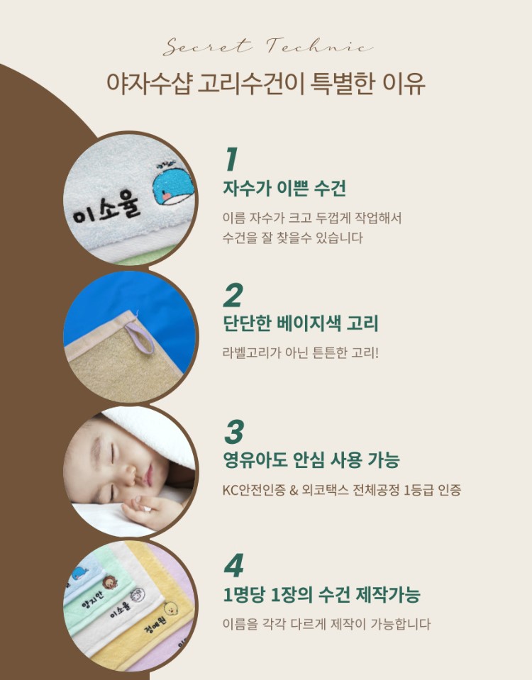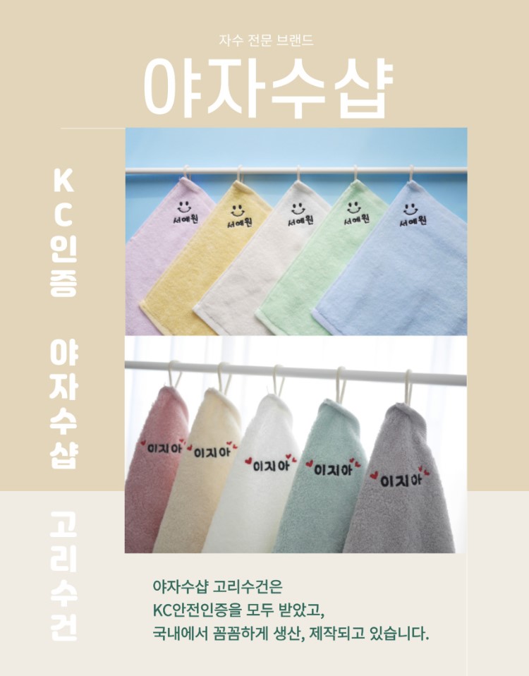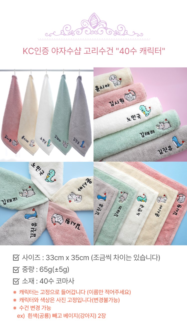 Palm Tree Shop KC certified daycare kindergarten 5-piece ring towel set, 40-count name embroidery wink 5-piece ring towel set / 야자수샵 KC인증 어린이집 유치원 고리수건 5매 세트, 고리수건 40수 이름자수 윙크 5매세트