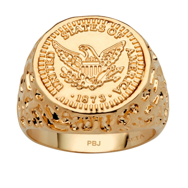PalmBeach Men's Yellow Gold-Plated American Eagle Coin Replica Nugget Ring Sizes 8-13 Size 10