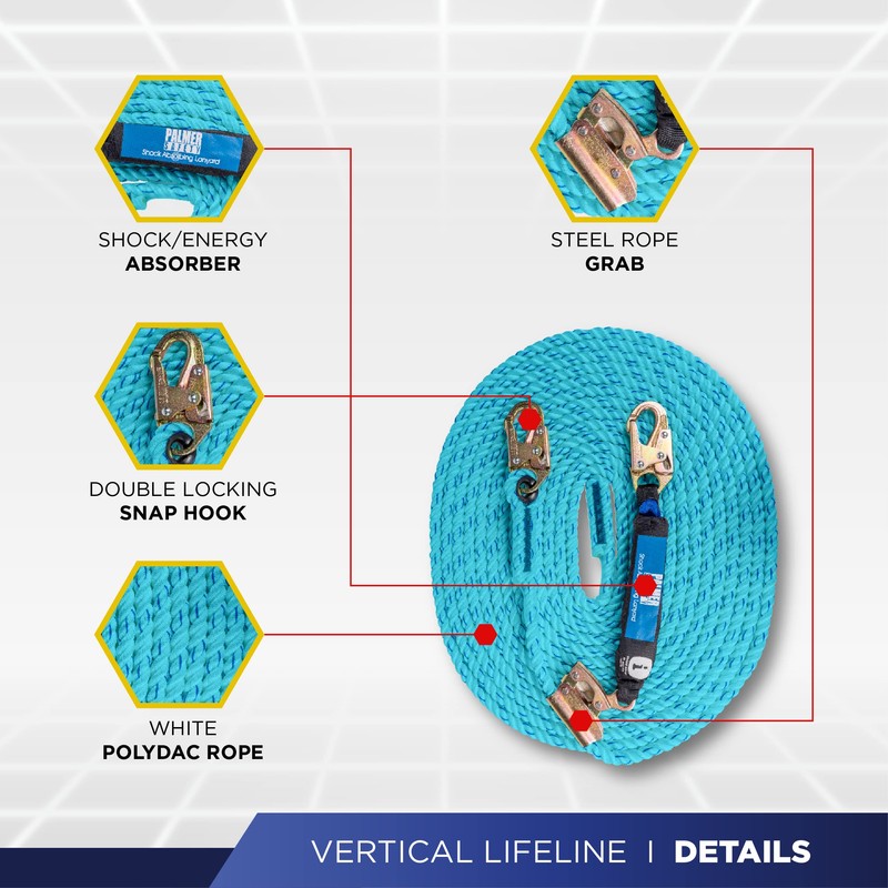 Palmer Safety Fall Protection Roofing Bucket Kit I Full-Body Harness, 50' Vertical Rope & Anchor Set I Construction Fall Arrest Kit for Roofers & Construction Workers I OSHA & ANSI Compliant Equipment