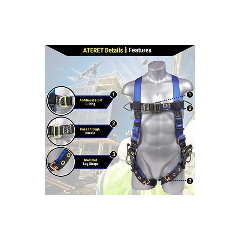 - 🧰 RELIABLY DURABLE - We provide fall protection gear that is built to last and can keep you out of harm’s way. The body harness is build with these physical parameters: Webbing: Polyester, Width: 1.73 in I Conforms to: Meets or Exceed ANSI Z359.11-2014 | Metal Component: D-Ring: Steel: Other Components: Alloy Steel | Conforms to: Meets or Exceed ANSI Z359.11-2014 I Capacity: ANSI 310lbs up to 420lbs I Weight: 5.28 lbs.