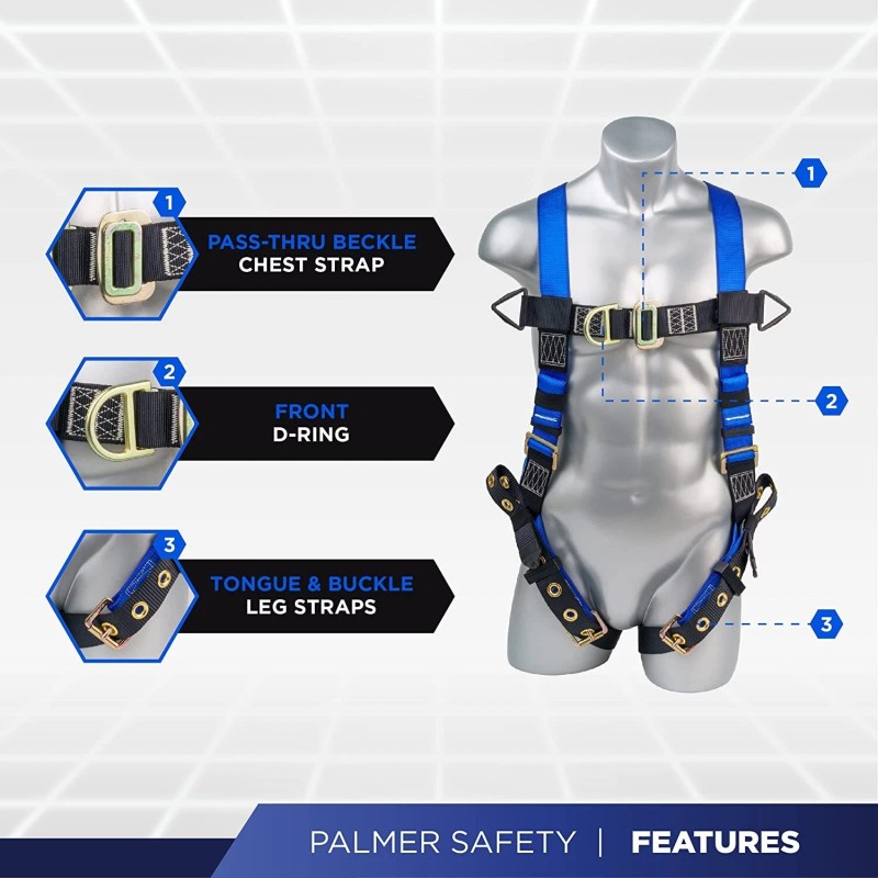 - 🧰 WORK SAFELY - Palmer Safety Harnesses are designed and tested to comply with applicable OSHA and ANSI standards for fall protection equipment. When used as a component in a personal fall arrest system, or a personal restraint system, the Palmer Safety harnesses provide workers with the full body harness system