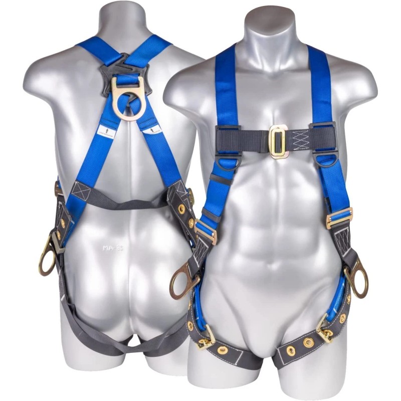 Palmer Safety Full Body Construction Harness with 5 Point Adjustment,... - Blue, 3D - Universal