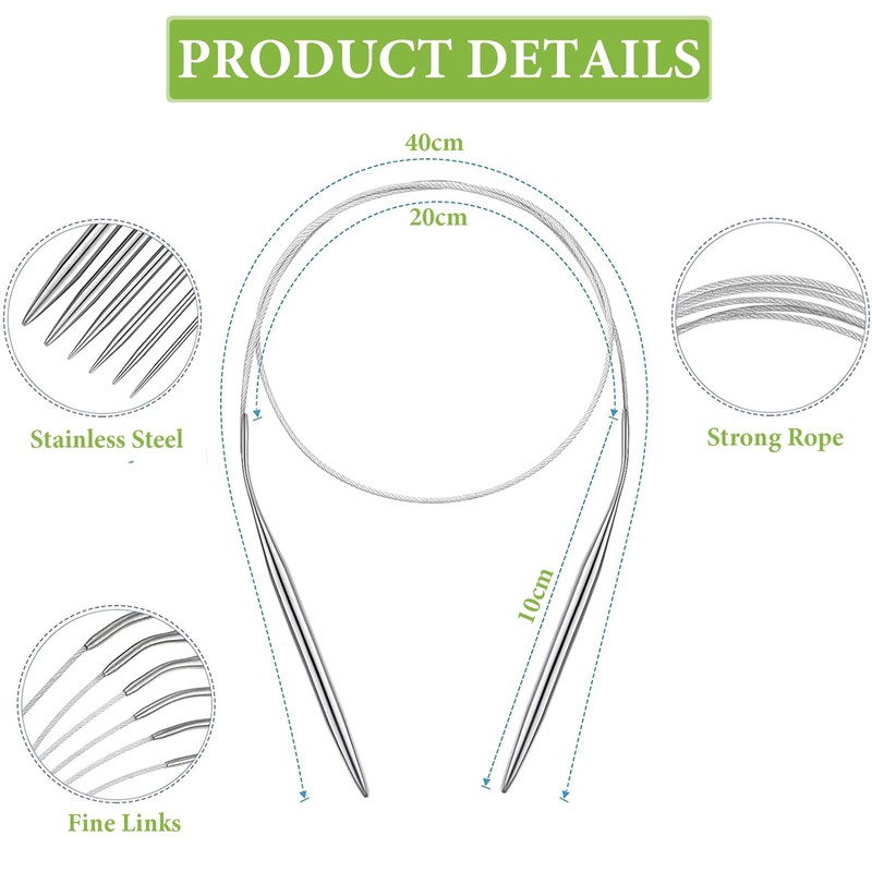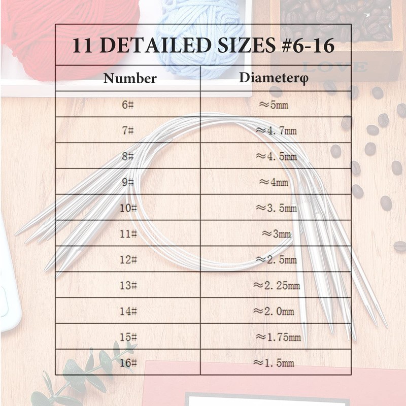 - Circular knitting needle set: you will receive 11 pieces of stainless steel circular knitting needles in different sizes: 1.5 mm, 1.75 mm, 2.0 mm, 2.25 mm, 2.5 mm, 3.0 mm, 3.5 mm, 4.0 mm, 4.5 mm, 4.7 mm, 5.0 mm. You can choose the right size knitting needles circular knitting needle for your knitting project
