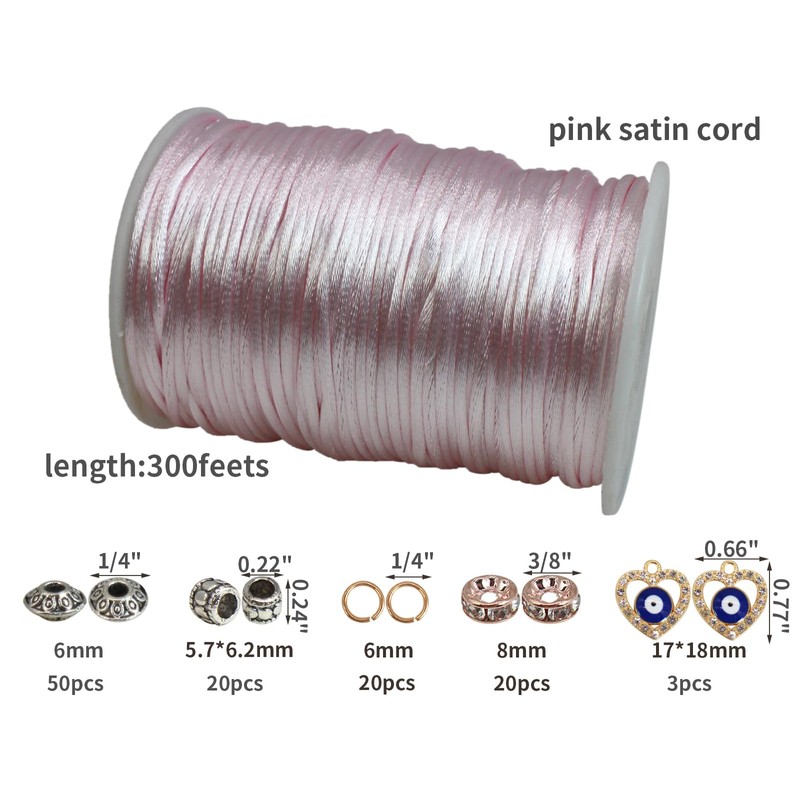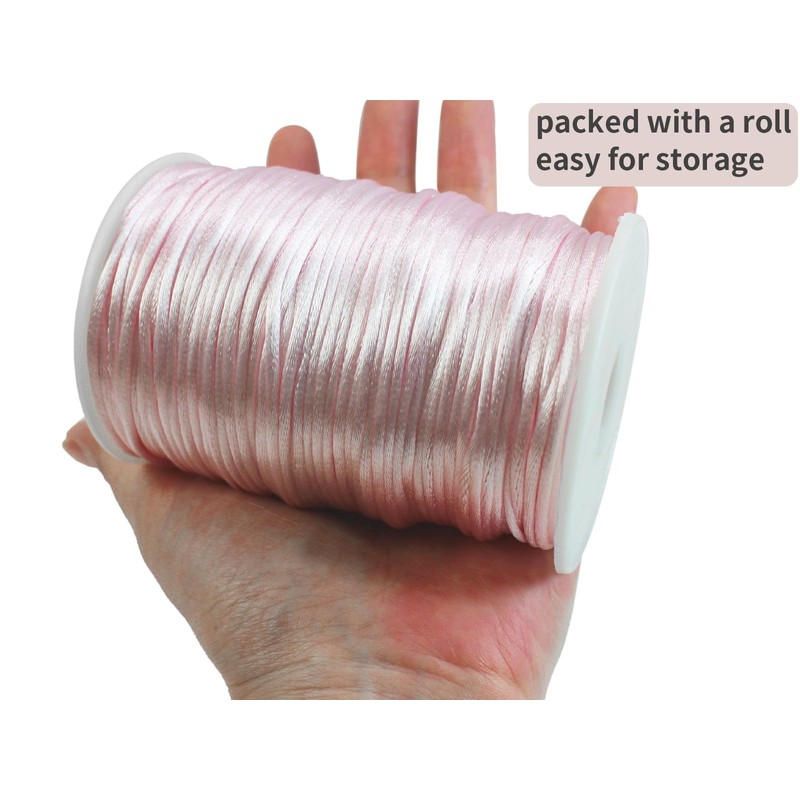 - ★ABOUT SATIN NYLON CORD: The pink beaded cord is approx. 2.5 mm in diameter and 300 feets in length. The cord is very smooth, so making a bracelet with this material wouldn't irritating to the skin, it is sturdy enough to secure your bracelets and DIY crafts, and the color is colorfast.Also you can have enough length to make several crafts.