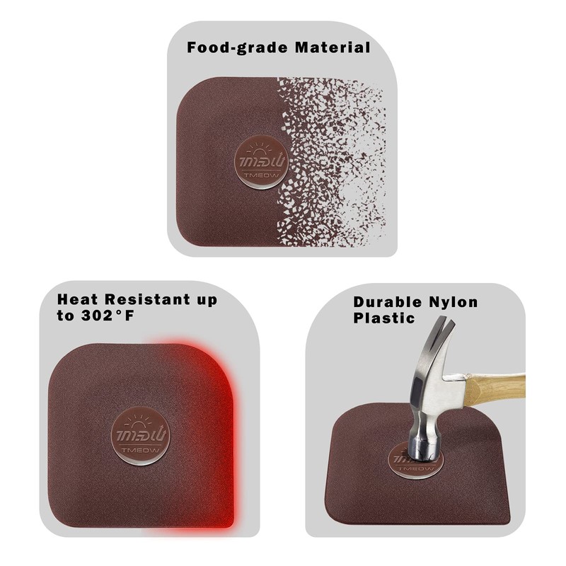- Durable Material - Containing no BPA, the pot scrapers are made by food-graded plastic which is non-toxic, odorless, durable and environmental; with better resistance to high temperature up to 215F°, the plastic pan scrapers can bath in the boiling water; the non-stick surface is easy to clean.