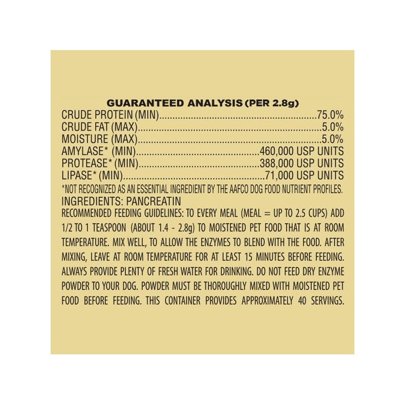 - Highest Potency Available – 10x Porcine Pancreatic Enzyme Powder Maximum Enzyme Levels To Support Digestion Of Fats, Proteins & Carbohydrates Contains Lipase, Amylase & Protease Digestive Enzymes For Nutrient Absorption Acetone-Free | Dust-Free | Low-Odor Formulation Dosed Per Meal, Not Per Cup Of Food | Use Less & Save More