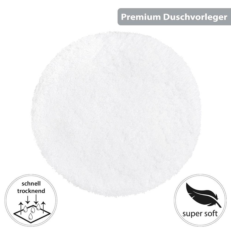 Bath mat dimensions (W x H): 50 x 80 cm or 60 x 100 cm. Dimensions of round bath mat: 56 cm / 71 cm or 90 cm. Colours: Petrol / green / cream / fuchsia / white made from 100% high-quality microfibre non-slip with PVC covering to protect the floor. High-quality edging. Tested for harmful substances in accordance with Öko-Tex Standard 100.
