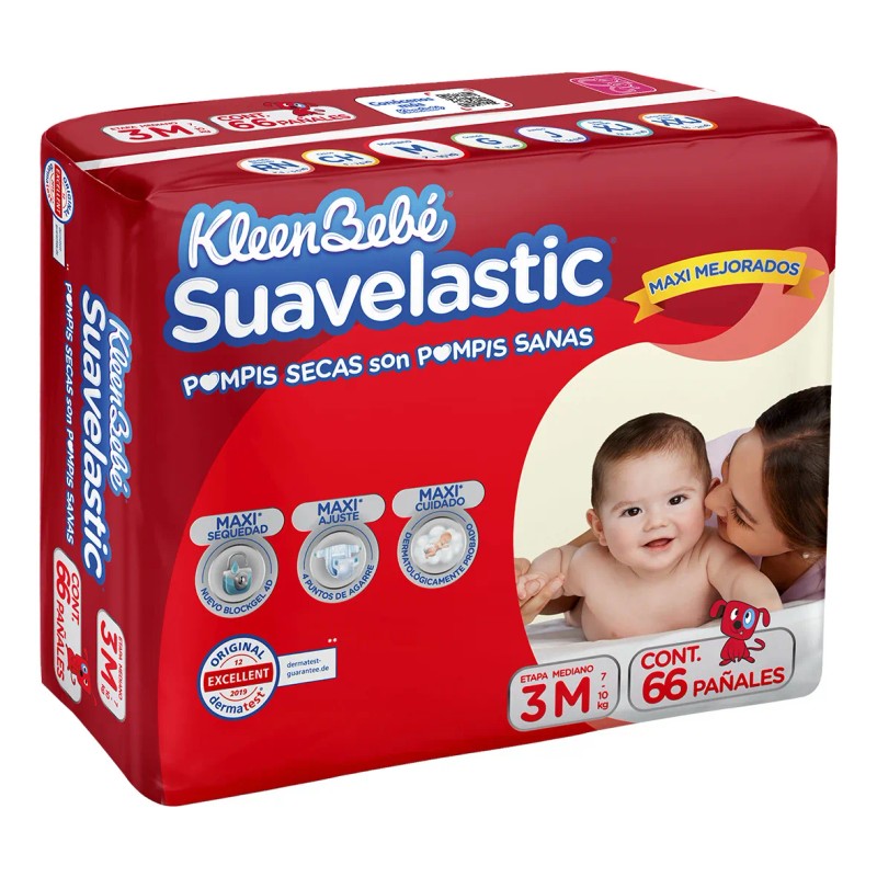 Pañales KleenBebé Suavelastic Etapa 3 Unisex 66 Piezas