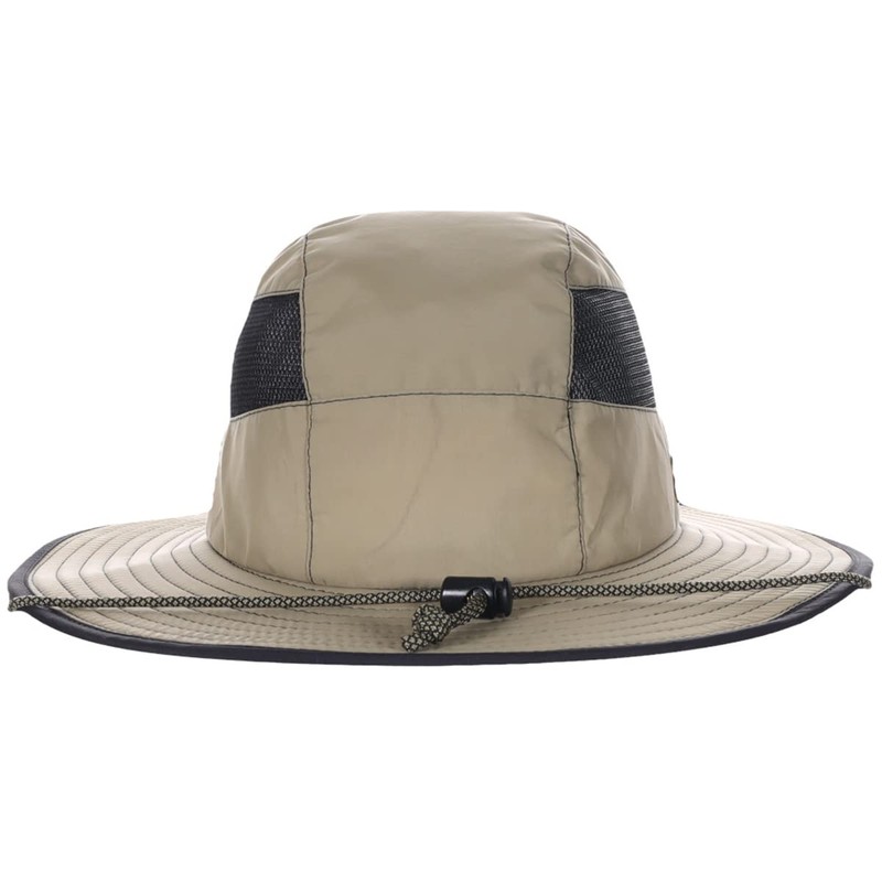 - CLASSIC DESIGN: Crafted out of nylon material, this crushable/packable Panama Jack camper boonie bucket sun hat is designed with mesh sidewalls, a removable chin cord with adjustable toggle, moisture wicking sweatband and a 3 1/4" brim with ultimate UPF (SPF) 50+ UVA/UVB sun protection. (Open mesh portion not UPF rated.)