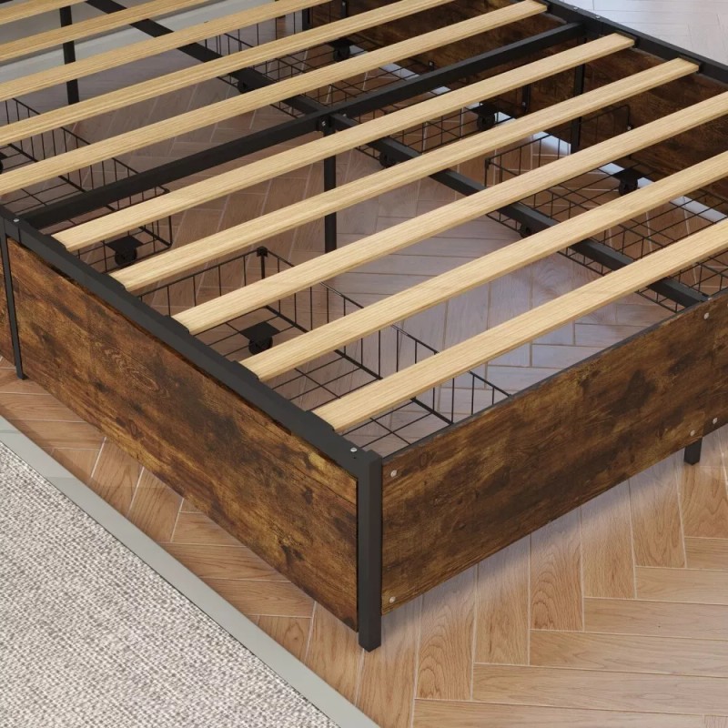 - VINTAGE HEADBOARD & FOOTBOARD - The combination of vintage MDF board & black metal bed frame takes a mild industrial look and rustic style, without being overly trendy. Very suitable for your house style. This retro bed frame is a sleek to your bedroom.