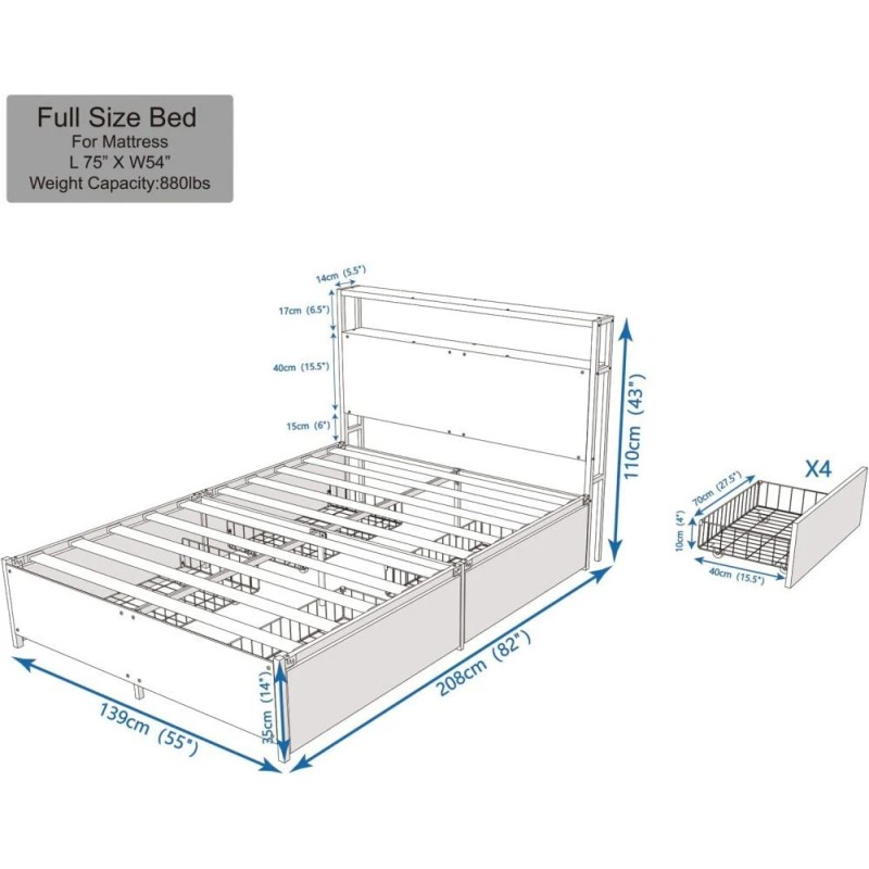 - Features: 4 Drawers;2 Tier Storage Headboard