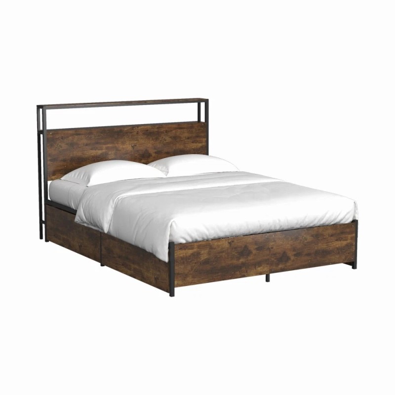 Panana Full/Queen Bed Frame,Industri - Black&Brown, Queen