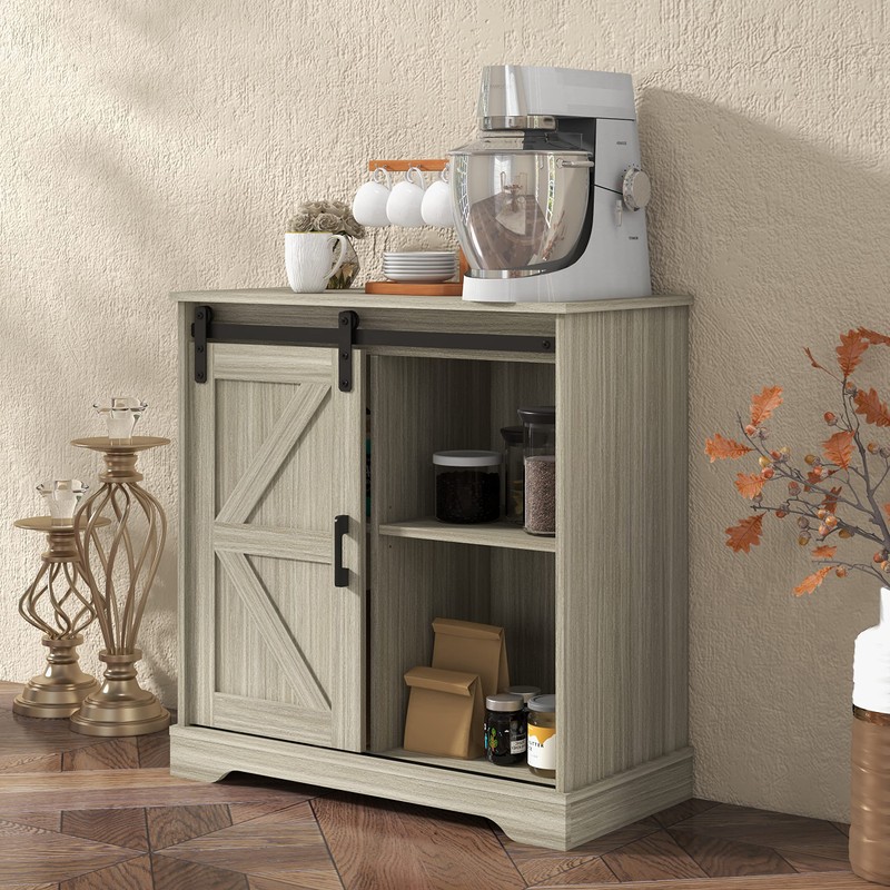Panana Sliding Barn Door Buffet Sideboard Storage Cabinet Coffee Bar Kitchen Farmhouse Style (Oak)