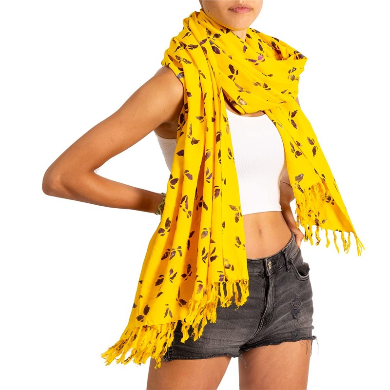 PANASIAM Sarong Orange Shades Scarf Beach Towel Wrap Dress Soft Natural Fabrics Fair Produced, B301 Yellow Butterfly