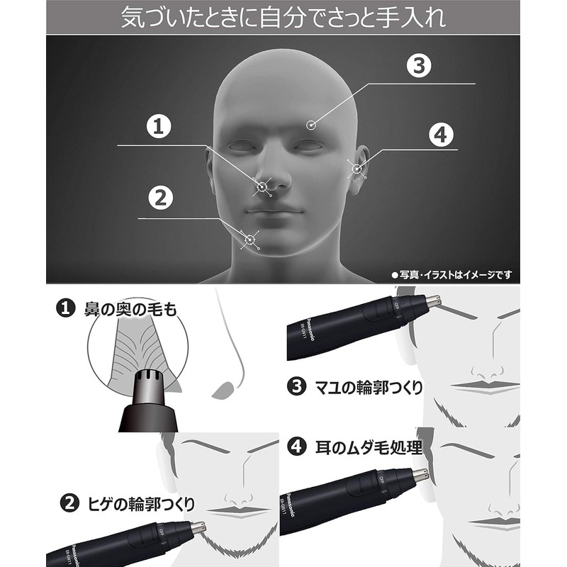 Panasonic ER-GN11-K Nose Hair Cutter, Etiquette Cutter, Men's, Eyebrows, Beard, Ears