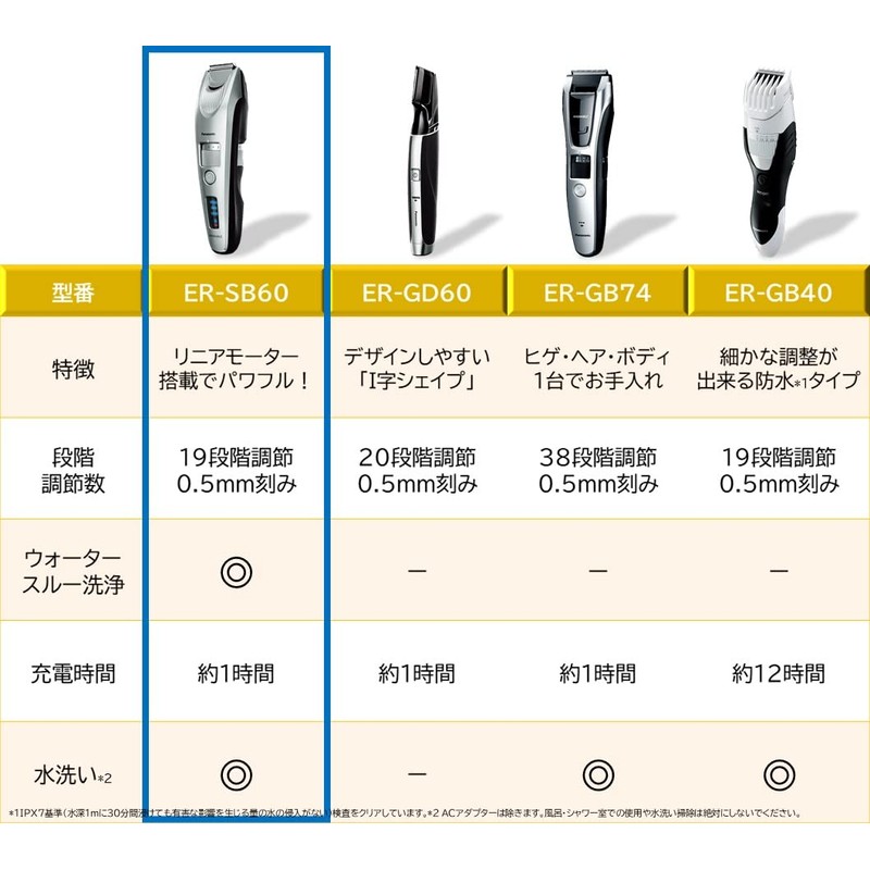Panasonic ER-SB60-S Beard Trimmer, Charging/AC Type, Silver Tone
