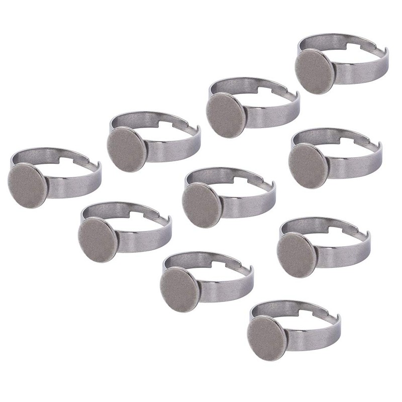 PandaHall 10 Pieces 304 Stainless Steel Adjustable Finger Ring Bases Sockets for Cabochon Round Finger Ring Bowls for DIY Ring Making