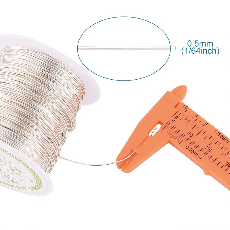 Pandahall 24 Gauge Copper Wire Jewelry Beading Craft Wrapping Making Silver Long-Lasting Plated Copper Wire 0.5mm 23m/roll