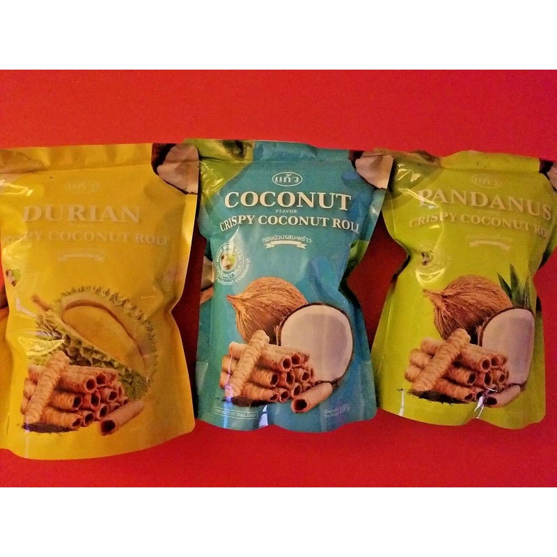 PANDANUTS 3 PACK CRISPY COCONUT ROLL ,DURIAN & COCONUT FLAVOR