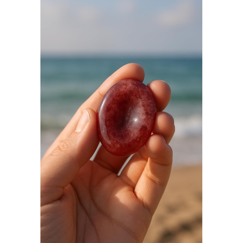 Worry Strawberry Quartz Stones, Strawberry Thumb Quartz Stone, Crystal Thumb Worry Stone, Thumb Stone for Balancing Reiki, Therapy, Meditation