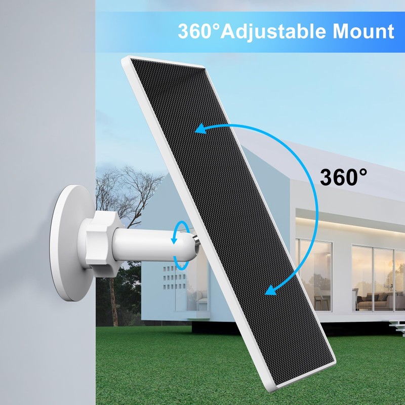 - Eficiencia de carga de hasta un 21%: el cargador solar para Eufy está hecho de silicio monocristalino, la eficiencia de carga de hasta un 21%. El panel solar puede obtener energía ininterrumpida y estable del sol, solo unas pocas horas de luz solar directa todos los días mantendría tu cámara cargada durante todo el día.