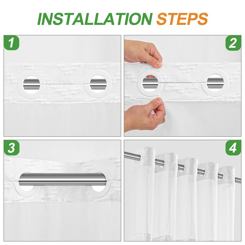 - 🛀【Easy to Install & Care】 Including a Set of Shower Curtain & Snap On/Off Replaceable Liner: No Hooks Needed design with built-in rings for easy on and off. Snap-in water repellent liner is removable and machine washable.