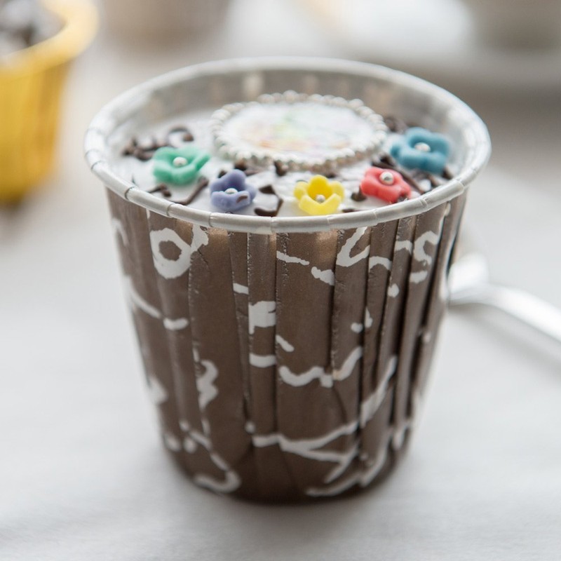 - TRENDSETTING DESIGNS: Give treats a luxurious makeover with these chocolate brown and white swirled baking cups. These attention-grabbing pleated cupcake paper cups are sure to impress your guests!