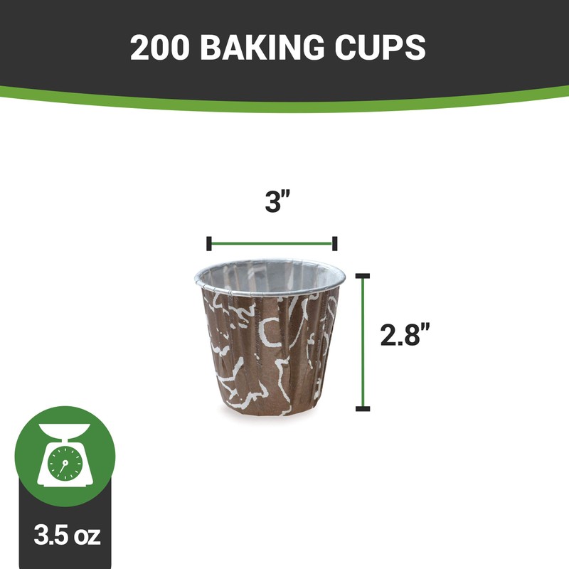 Panificio Pleated Baking Cups, 3.5 oz Baking Cups, Tall Baking Cups - Muffins, Cupcakes, Mini Snacks - Brown Chocolate Whisp Print - Disposable - 200ct Box - Restaurantware