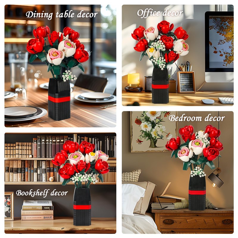 - High Quality and Safe Building Blocks: The rose bouquet block set is made of high quality ABS material, which is hard wearing and smooth surface to ensure our safety during play. The set is made with precision cutting technology and advanced colour processing, the blocks are accurately positioned so that they fit together perfectly, the bouquet of blocks will always stay bright, no need to water, easy to take care of.