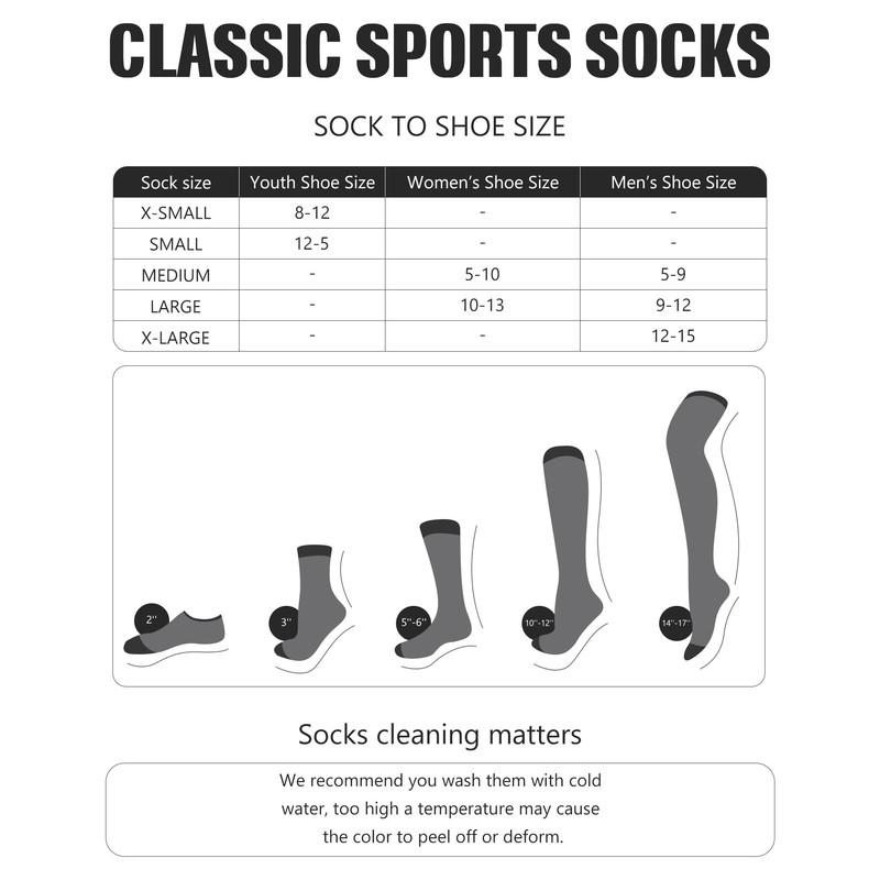 - 4 Sizes for Wide Choice: shoe sizing information is for Small (youth shoe sizes 12-5), Medium (women's shoe sizes 5-10, men's shoe sizes 5-9), size Large (women's shoe sizes 10-13, men's shoe sizes 9-12), size XL (men's shoe sizes 12-15); Various colors and sizes to suit any combination