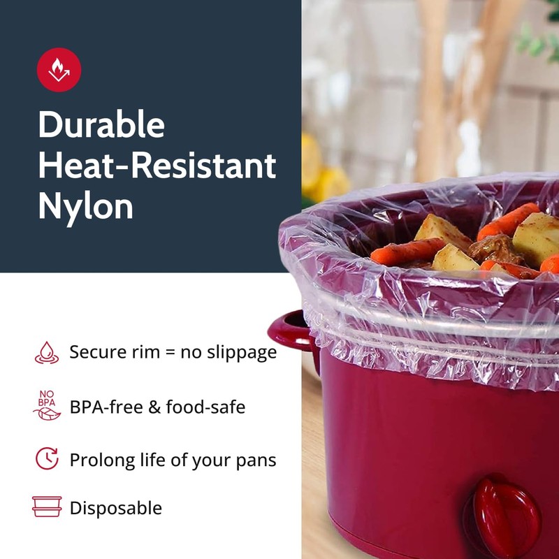 PanSaver Slow Cooker Liners - Disposable Liners with Sure Fit Band for Snug Fit - Instant Cleanup with No Scrubbing - Fits 3-6.5 Quarts, 4 Count