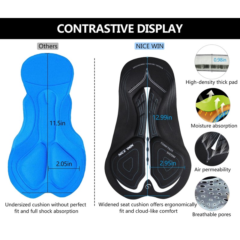 Los pantalones cortos de bicicleta NICEWIN con acolchado están hechos de tela de alta calidad: ligeros, transpirables, suaves y de secado rápido. La almohadilla de alta densidad alivia eficazmente las molestias y los puntos de presión durante paseos largos, te mantiene fresco y seco cuando conduces cualquier bicicleta de montaña en interiores y exteriores o en carretera.