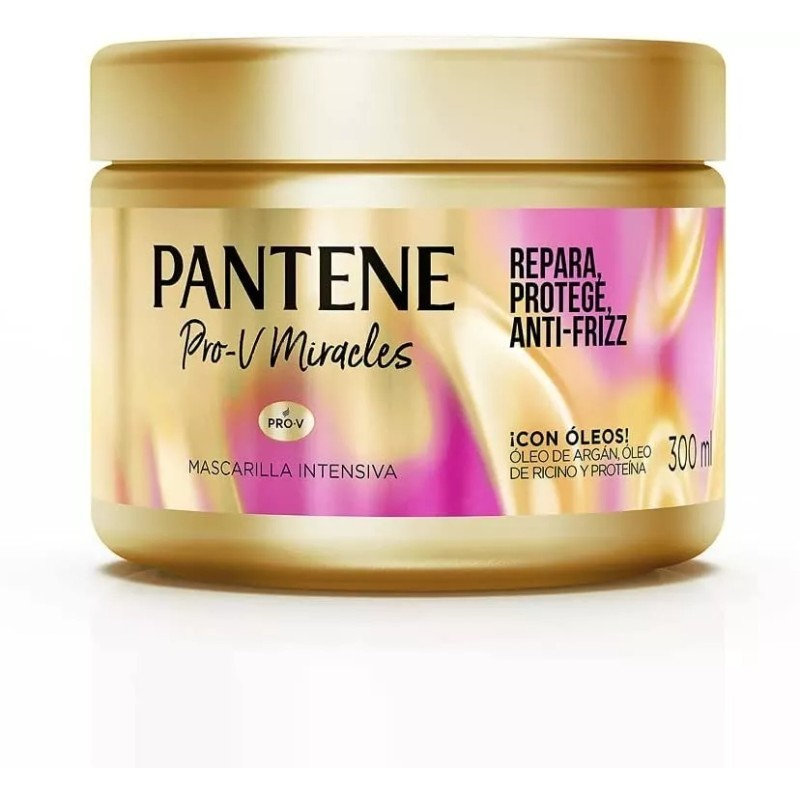 Mascarilla Intensiva Pantene Pro-V Miracles Anti-frizz 300ml, repara y protege el cabello, brindando control del frizz. Incorpora óleos naturales y tecnología inteligente que identifica y repara las áreas más dañadas, proporcionando hidratación y nutrición para una mayor suavidad y protección del color.